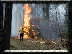 Did I say "including?" Yes, you read it correctly, the U.S. Forest Service set fire to our property. It was not without our permission and participation that they did so. Don and I had been reading a little here and there about prescribed burns and how they help to manage and restore grasslands and forests. Our 30 acres could definitely benefit from land conservation and restoration techniques such as burning. So when the Forest Service asked us if they could cut across the back of our property to prepare for a burn this spring, we were more than happy to ablidge.